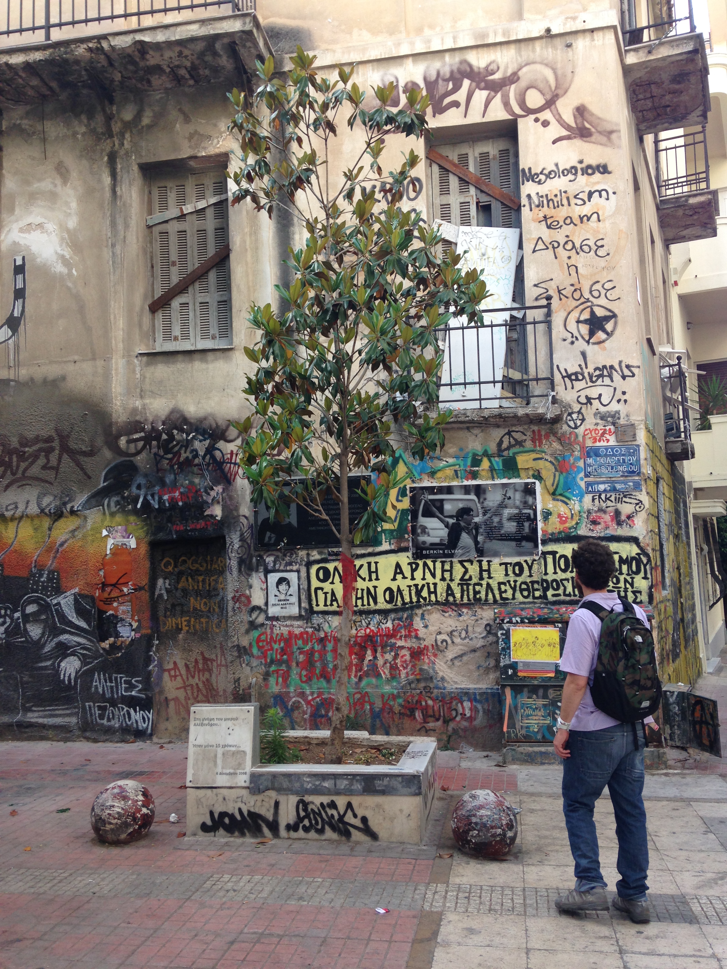 Anche Alexandros Grigoropoulos era uno studente: è stato ucciso a sangue freddo da un poliziotto il 6 dicembre 2008. La rabbia per questa morte insensata si è mischiata all’insofferenza diffusa nei confronti di uno stato autoritario e corrotto, insicuro, pervaso dall’ingiustizia sociale; l’omicidio è stato la scintilla che ha incendiato Atene intera – un fuoco che si è propagato in tutta la Grecia e fin oltre i suoi confini. La protesta violenta è andata avanti per settimane, mentre le scuole e le università venivano occupate. I disordini si ripetono puntuali ogni anno, nel giorno dell’anniversario della morte di Alexandros.