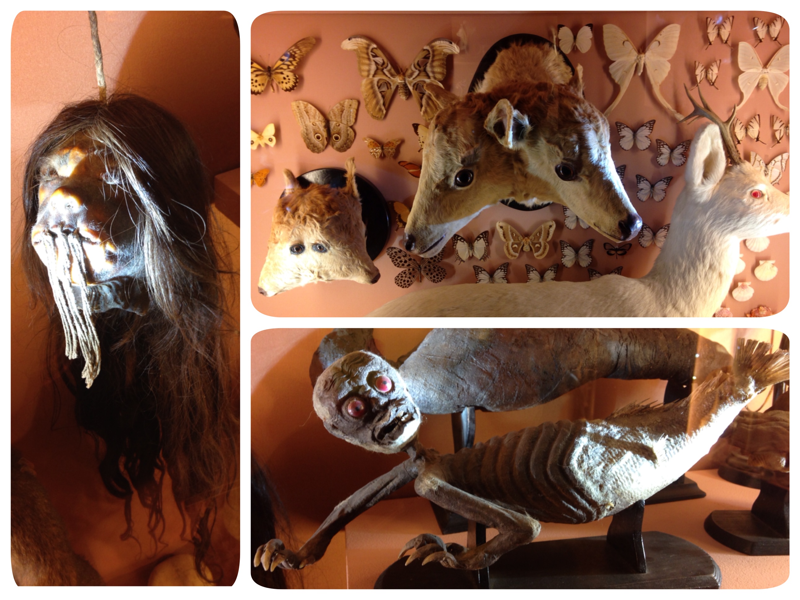 Del resto, impulso primario del collezionista è proprio quello di poter possedere, ed eventualmente esporre agli occhi increduli degli ospiti e dei visitatori, una pletora di cose straordinarie nel senso letterale del termine, e cioè nuove, diverse, preferibilmente dal sapore esotico, lontano, mitico. Una vera e propria Wunderkammer, nella tradizione di quelle camere delle meraviglie che affondano le proprie radici nel Medioevo, raggiungono la massima popolarità nel Cinquecento e nei barocchismi seicenteschi, e nel Settecento illuminato da Linneo e le sue classificazioni scientifiche costituiscono il nocciolo da cui si svilupperà il concetto di museo modernamente inteso. Non a caso il padiglione più propriamente museologico del Museo di Storia naturale è introdotto dalla ricostruzione di una Wunderkammer, in cui fanno bella mostra di sé naturalia e artificialia da rimanere a bocca aperta, come una tsantsa (testa umana privata del cranio e rimpicciolita alle dimensioni di un pugno, preparate con grande abilità dagli indios cacciatori di teste dell’alta Amazzonia, allo scopo di vendicare una persona e placarne lo spirito tormentato), un cerbiatto e un vitellino a due teste, e addirittura due basilischi, creature fantastiche costruite componendo pezzi di vari animali.